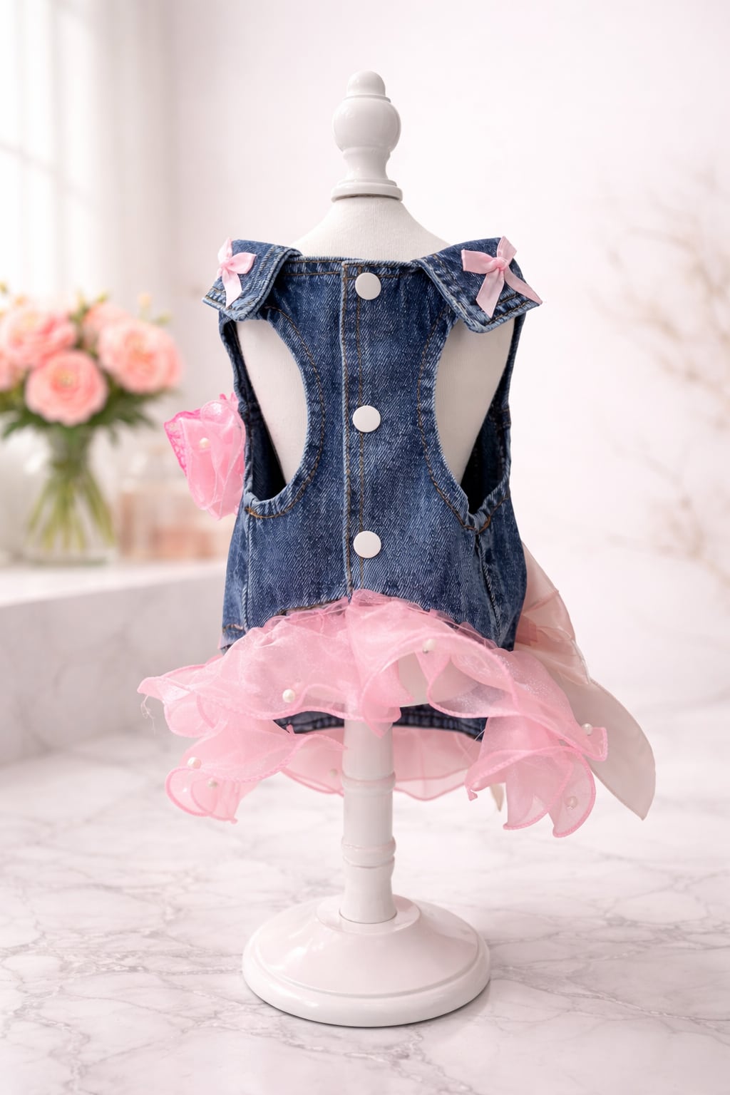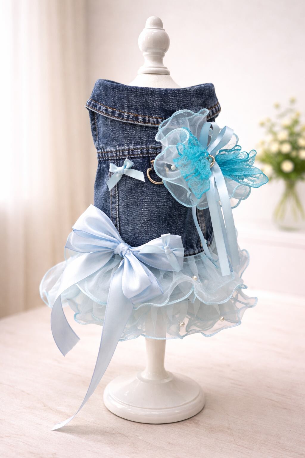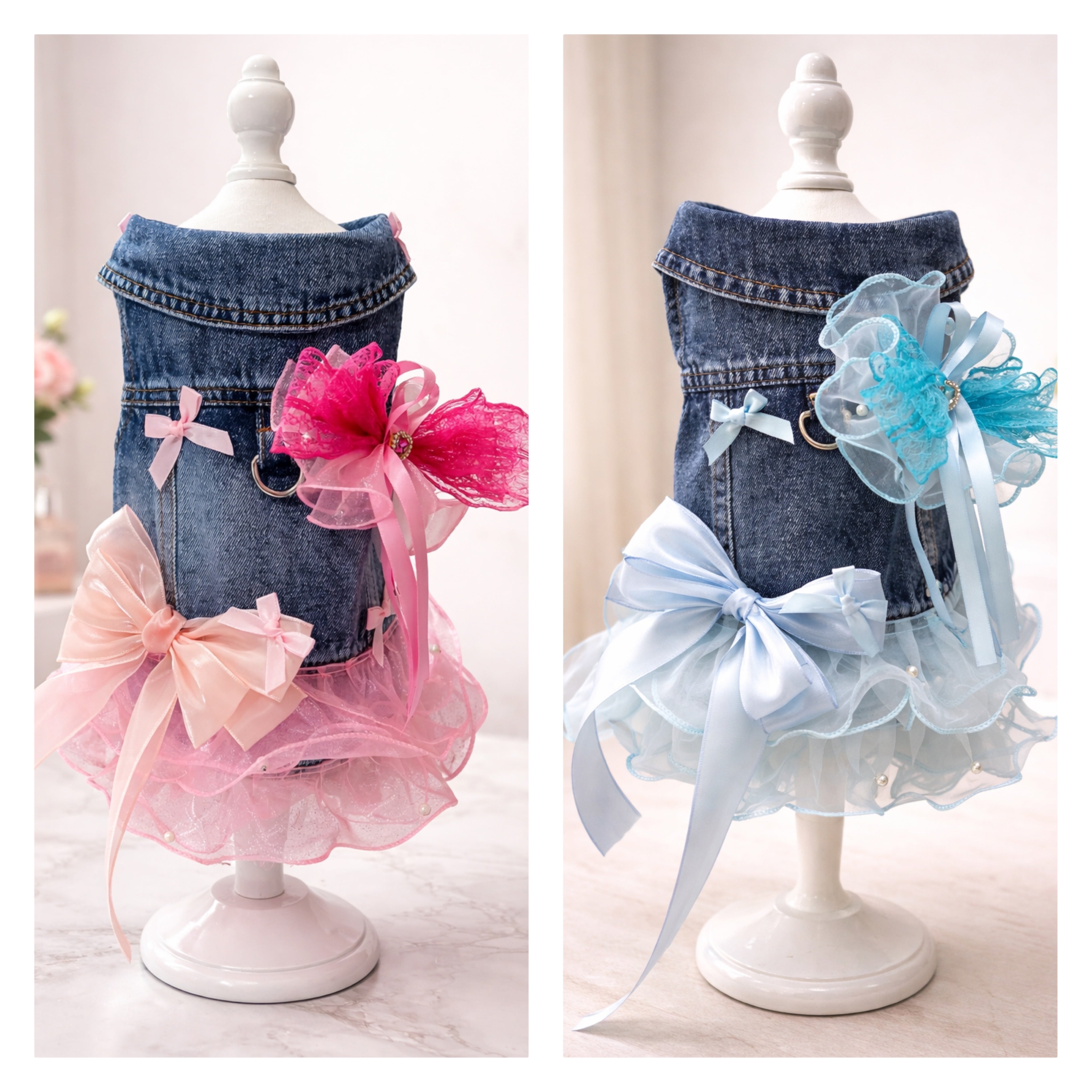 レースやリボンをたっぷり装飾した デニムワンピースです!